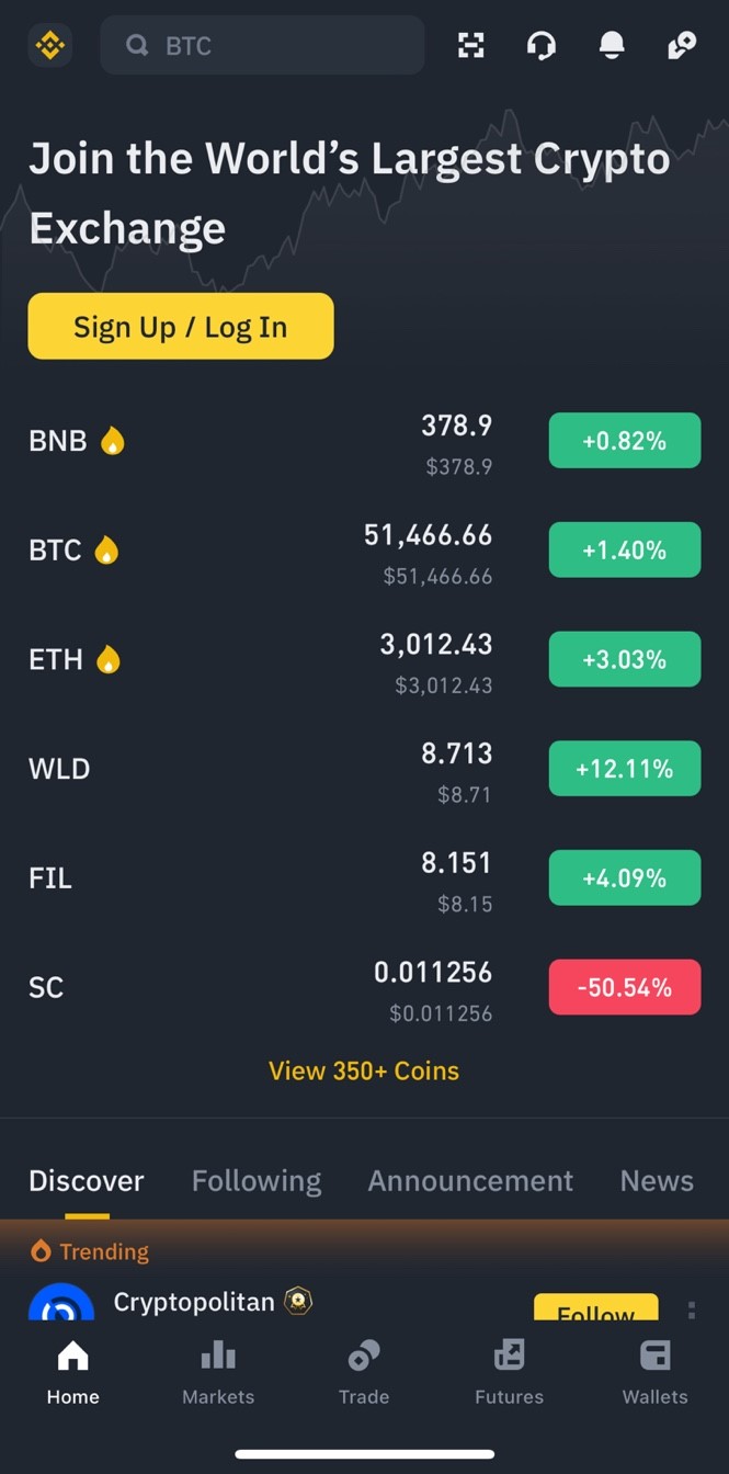 1. 바이낸스 어플 다운 받아주시면 됩니다.