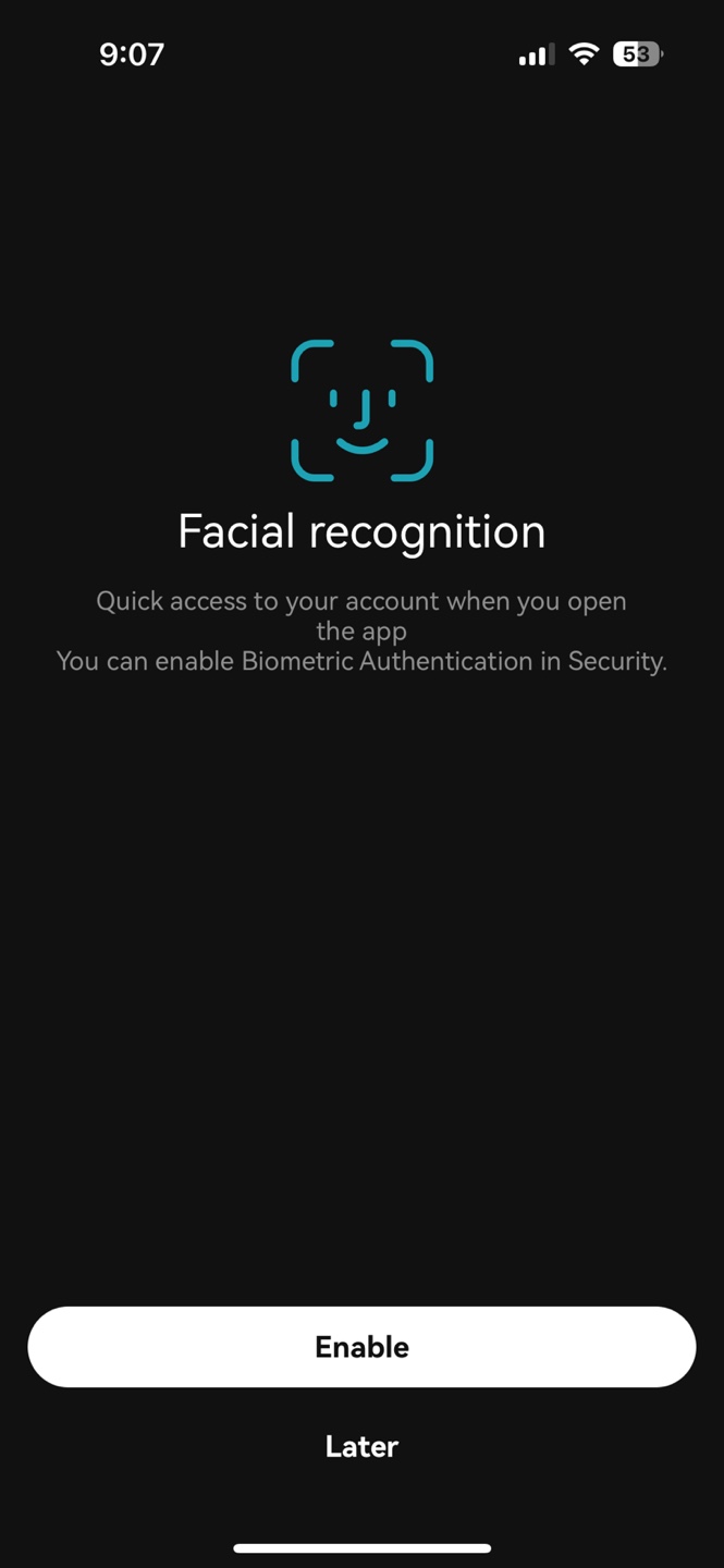 9. FACE ID를 쓸 것인지 뜰 것입니다. Enable 눌러주셔도 되고 Later 누르셔도 됩니다.