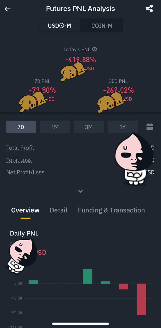 아쉽게도 원금 회복도 못하고 다 잃게 되어버렸죠. 여러분은 일확천금을 노리지 마시고 감정 컨트롤 하면서 천천히 수익을 내시기 바랍니다.