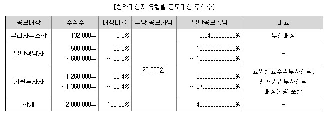 청약 단위는 20주 부터입니다.