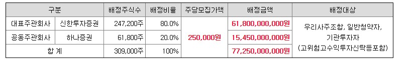 | 청약증권사 | 신한투자증권, 하나증권 |