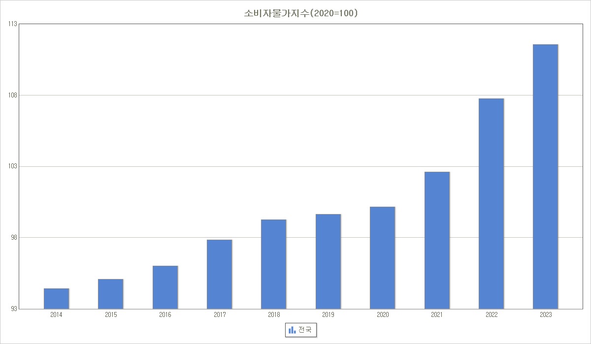 매년 오르고 있습니다. 데이터를 해석해보면 시간이 흘러갈수록 물가는 계속 상승한다는 것입니다. 그렇다면 예금과 적금이 답일까? 다시 한번 생각해봐야합니다. 물가 상승이 계속 오른다면 통장에 가만히 있는 현금의 가치는 떨어지고 있는 것입니다. 물가 수준이 지속적으로 상승하는 것을 '인플레이션'이라 합니다. 그래서 첫 투자는 변동성이 큰 것이 아닌 통장 금리보다 조금 더 이익을 보겠다 생각하시는게 마음이 편할 것 입니다. 섣부른 투자는 손실에 첫 걸음입니다.