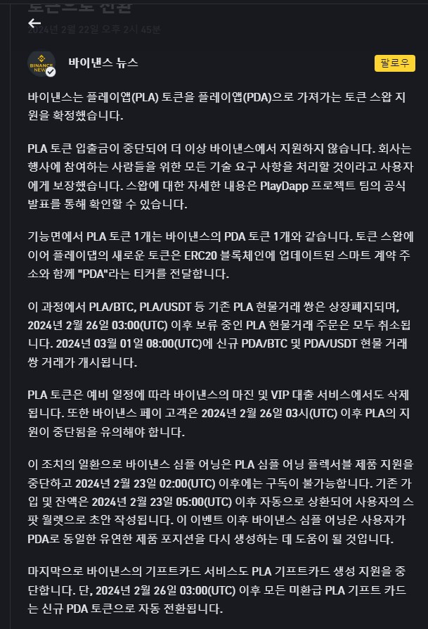| 플레이댑 PDA 바이낸스 재상장 (0) | 2024.03.01 |