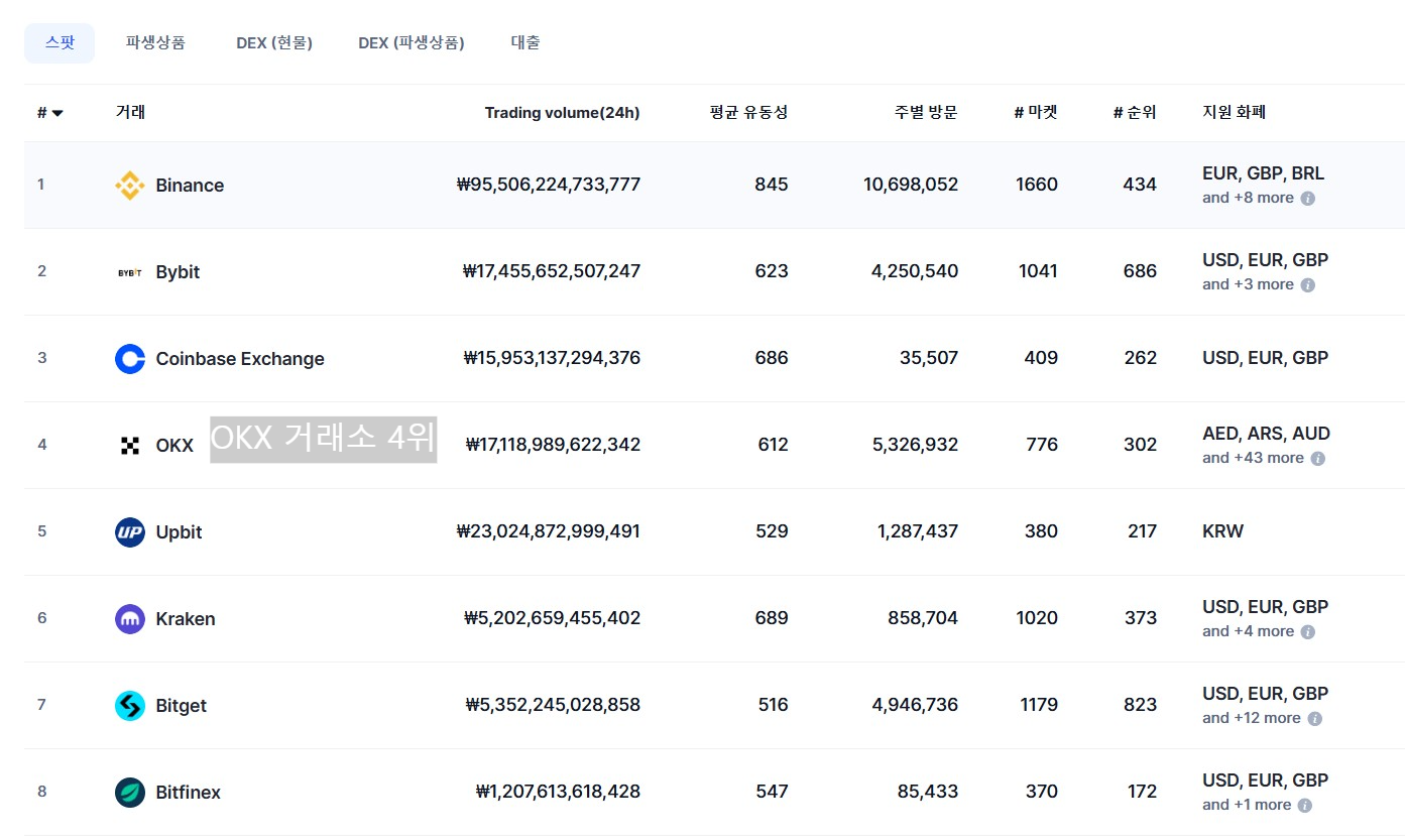 국내 거래소인 Upbit보다 위에 위치해 있습니다. 그만큼 많은 사람들이 이용하고 있으면 거래 수수료가 비싸지 않아 선물, 현물 거래에 용이합니다. Upbit에 없는 코인들도 많이 있습니다.